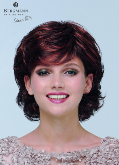 Seidiges Kunsthaar, faszinierend glänzende Haarfarben und ein angesagter Kurzhaarschnitt machen die Damenperücke Ava von Bergmann zu einem wahren Klassiker! Wählen Sie aus unserer umfassenden Farbauswahl Ihre Lieblingsfarbe aus und überzeugen Sie sich doch einfach selbst von der modernen Frisur, dem großartigen Volumen und dem hervorragenden Tragekomfort dieses Ladyline-Modells. Die hochwertigen Synthetikfasern besitzen eine seidige Geschmeidigkeit und lassen sich völlig unkompliziert pflegen und stylen – achten Sie jedoch bitte darauf, nur speziell für Kunsthaarperücken entwickelte Produkte zu verwenden. Die Montur dieser Bergmann-Perücke wurde zum Großteil aus elastischen und luftdurchlässigen Baumwolltressen gefertigt, die sich angenehm sanft an Ihren Kopf anschmiegen. Eine perfekte Passform bietet dieses Modell in der Standardgröße bei einem Kopfumfang von 54-56 cm. Für eine natürliche Optik wurden im Scheitel- bzw. Wirbelbereich ein Teil-Monofilament und an der Stirn ein hauchzarter Filmansatz eingearbeitet.