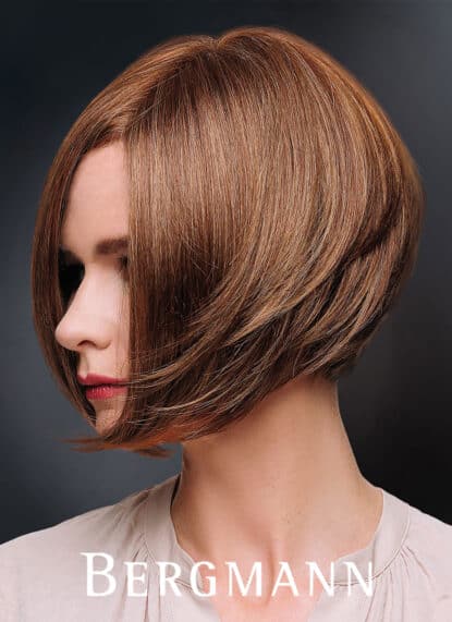 Mit Leichtigkeit weht der Wind durch Ihre Haare – und niemand merkt, dass es sich um Zweithaar handelt! Diese herausragende Authentizität macht die handgeknüpfte Kunsthaarperücke Mona von Bergmann aus! Der trendige Bob aus der Ladyline-Kollektion besteht aus federleichten Kunsthaaren, die herrlich glänzen und natürlich fallen! In sorgfältiger Handarbeit wurden diese synthetischen Fasern auf die überaus leichte Montur aufgeknüpft. Ein extra dafür angenähter Filmansatz über der Stirn verdeckt den Rand des Gerüsts und sorgt so dafür, dass die schicke stirnfreie Frisur durch nichts gestört wird! Die Damenperücke Mona von Bergmann ist ein Top-Modell, mit dem Sie überall einen hervorragenden Eindruck hinterlassen!