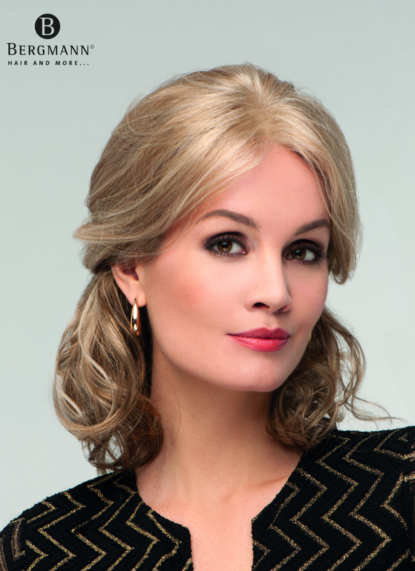 Elegante, sanfte Locken, ein top moderner Schnitt und die hohe Qualität der feinen Kunsthaare geben der Damenperücke Samira ein unglaublich lebendiges Volumen! Die schicke Frisur und die attraktiven Haarfarben dieser Kunsthaarperücke aus Bergmanns Ladyline Collection verleihen Ihnen einen besonders femininen und eleganten Look. Dieses Modell vereint die vielseitigen Vorteile eines elastischen Tressen-Gewebes im unteren Bereich der Perücke mit transparenten Stoffen, die einen echten Haarwuchs simulieren! Im Wirbel- bzw. Scheitelbereich wurde ein sehr naturgetreu wirkendes Teil-Monofilament eingearbeitet, während an der Stirn eine innovative Lacefront dafür sorgt, dass der Perückenrand nicht zu sehen ist. Die dehnbaren Baumwolltressen bilden ein anpassungsfähiges Gewebe, dass dieser standardgroßen Kunsthaarperücke (54-56 cm) den optimalen Halt und zuverlässigen Sitz geben.