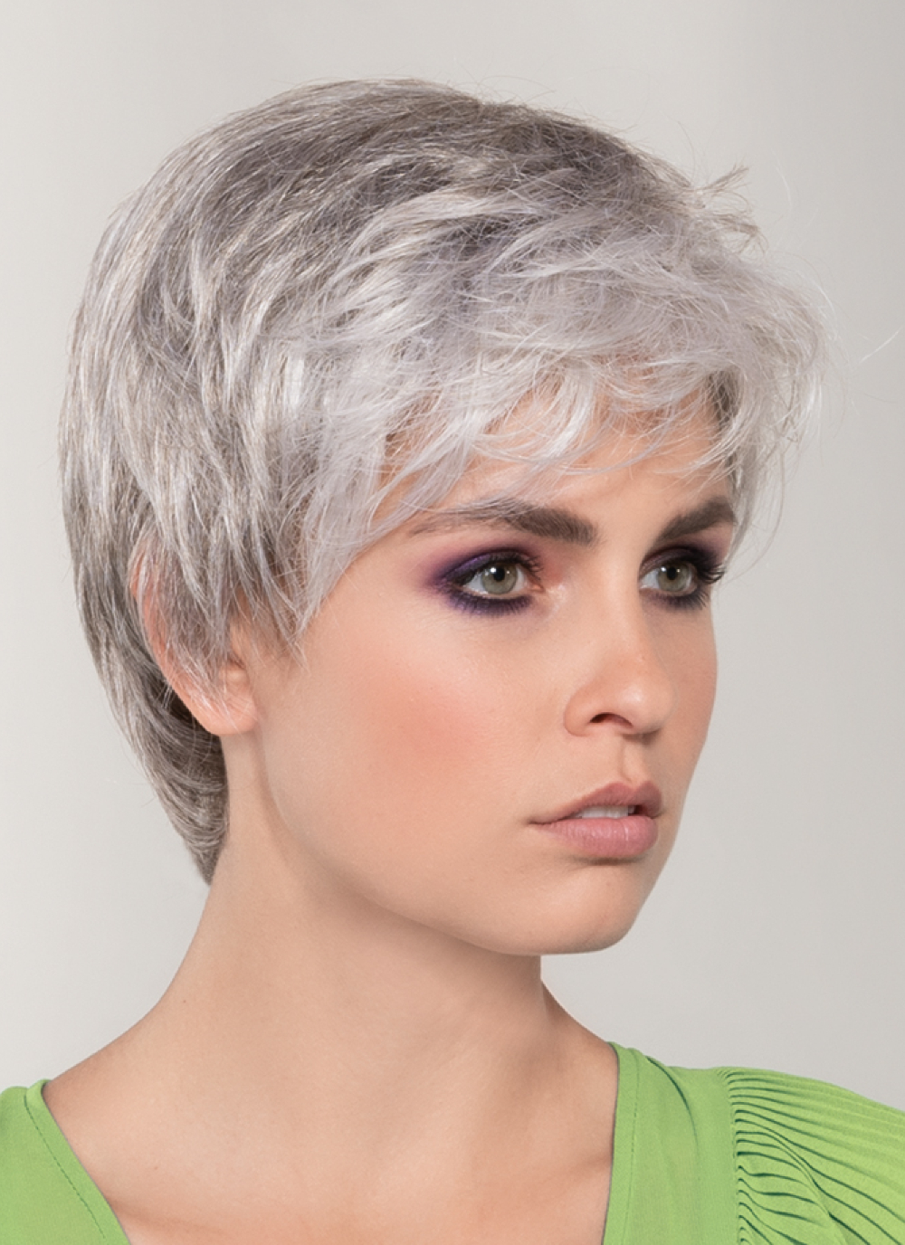 Zeitlose Eleganz und eine super unkomplizierte Kurzhaarfrisur - das erhalten Sie mit der Kunsthaarperücke Cella Mono von Ellen Wille! Diese schicke Damenperücke bietet Ihnen dank eines elastischen Tressengewebes im unteren Bereich der Montur einen sehr angenehmen und leichten Tragekomfort, während ein transparentes Monofilament und ein Filmansatz für einen unglaublich natürlichen Look sorgen. Dieses Modell aus der Modixx Collection passt Ihnen am besten und sitzt zuverlässig, wenn Ihr Kopfumfang ca 54-56 cm beträgt. Das feine, kurze Synthetikhaar zeichnet sich durch ein kraftvolles Volumen und einen strahlenden Glanz aus. Außerdem fallen die Haare sogar nach dem Waschen wieder in ihre ursprüngliche Form zurück, ohne dass ein weiteres Styling nötig ist.
