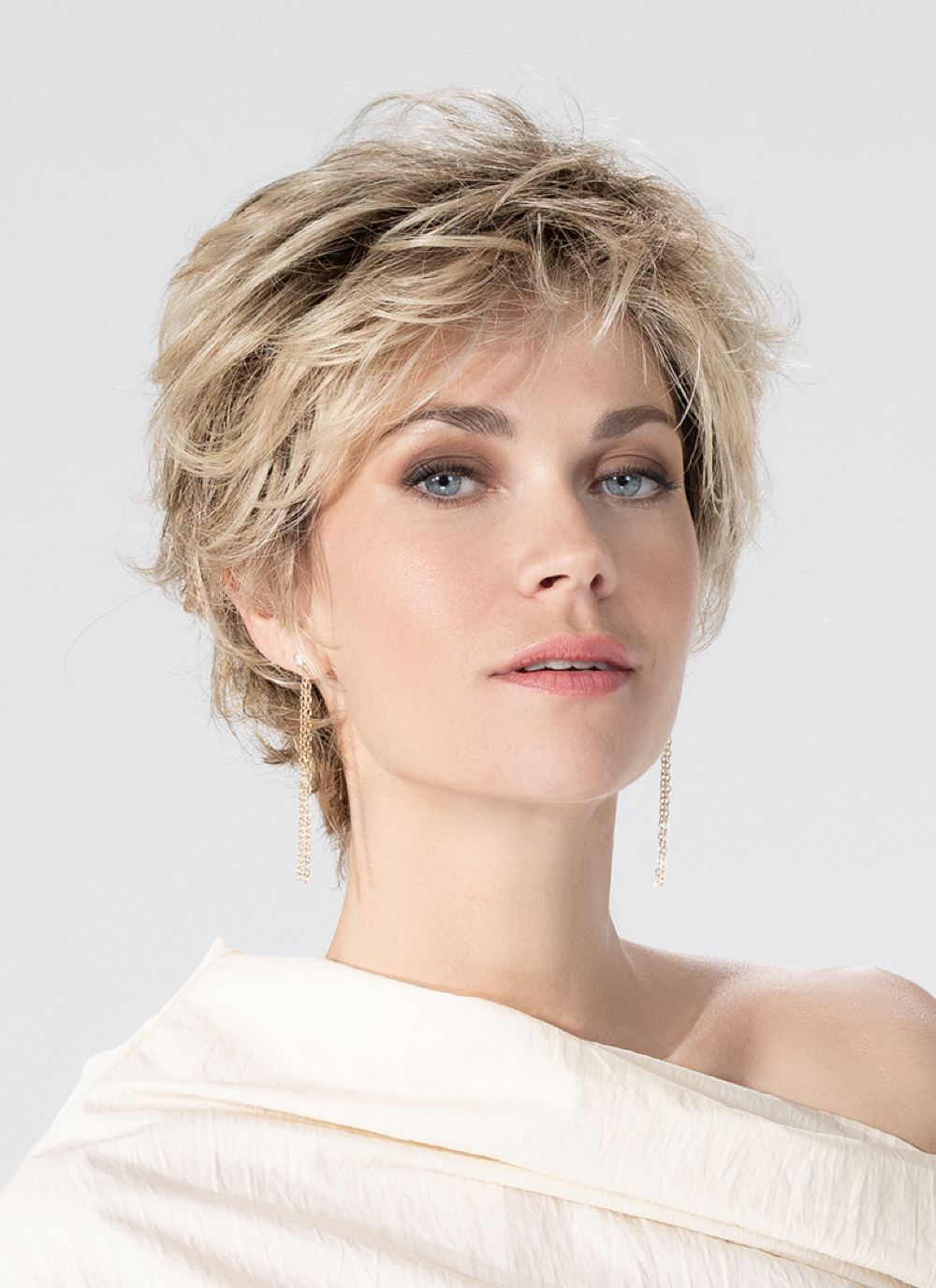 Die Kunsthaarperücke Charme Soft aus der Hair Society Kollektion von Ellen Wille präsentiert sich als klassischer Kurzhaarschnitt mit moderner Note. Weiche Stufen schaffen Volumen am Oberkopf, während der Nacken elegant anliegt. Der Pony fällt leicht in die Stirn und verleiht dem Gesicht Offenheit und Ausdruck. Diese Frisur wirkt gepflegt, charmant und gleichzeitig unkompliziert – ein echter Allround-Look für jeden Tag. Gefertigt aus hochwertiger Kunstfaser, bleibt die Form dauerhaft stabil und überzeugt durch natürlichen Glanz.Die Soft-Verarbeitung mit 100 % Handknüpfung sorgt für Leichtigkeit und angenehmen Sitz. Ein zarter Filmansatz / Lace Front rundet das Gesamtbild perfekt ab – der Haaransatz wirkt vollkommen echt, und die Stirnpartie fügt sich nahtlos ein. Die Damenperücke Charme Soft ist die ideale Wahl für Frauen, die eine stilvolle, pflegeleichte Perücke mit natürlicher Optik suchen. Sie verleiht Selbstbewusstsein, Eleganz und einen Hauch von jugendlicher Frische. Erhältlich in vielen natürlichen Farbtönen der Ellen Wille Kollektion.