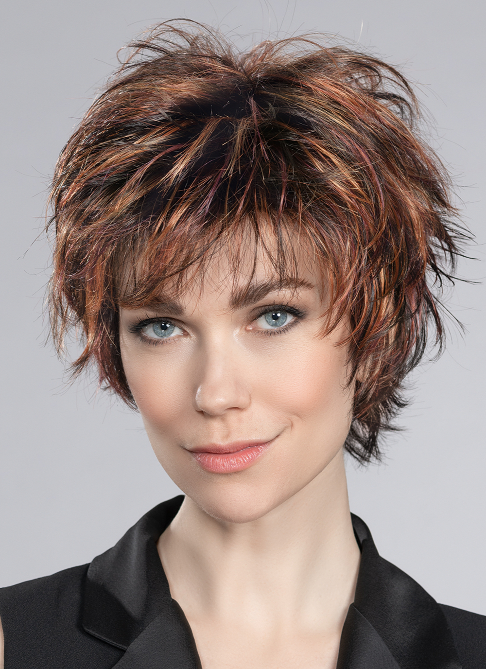 Mit der Ellen Wille Perücke Click aus der Hairpower Kollektion wirken Sie natürlich und modern zugleich. Der Kurzhaarschnitt dieser Damenperücke eignet sich insbesondere bei schmalen, ovalen Gesichtsformen und umspielt mithilfe der fransigen Struktur auch markantere Konturen spielerisch. So wirkt Ihr Gesicht mit der Kunsthaarperücke weicher und besonders feminin. Mit der Click von Ellen Wille erwerben Sie eine medizinische Perücke, die sich auch bei vollständigem Haarverlust gut eignet, da sie über hochwertige Materialien verfügt und durch diese besonders angenehm auf der Kopfhaut zu tragen ist. Das hochwertige Kunsthaar wurde in einem maschinellen Verfahren auf Baumwollbänder, die auch als Tressen bezeichnet werden, genäht. Durch diesen Herstellungsprozess wird der angenehme Tragekomfort bedingt, da die Tressen unter der Perücke eine äußerst angenehme Luftzirkulation ermöglichen. Aufgrund dessen werden Sie auch an wärmeren Tagen nicht unter der Perücke schwitzen. Die attraktive Damenperücke aus der neuen Hairpower-Kollektion ist in der Standardgröße ( 54-56 cm) sowie in vielen tollen Haarfarben verfügbar. Sie finden es in unserem Onlineshop in aufregenden Blond-, in Braun-, Schwarz- oder auch Rottönen, sodass Sie sich sicher sein können, dass Sie dieses Modell in Ihrer persönlichen Wunschhaarfarbe finden werden. Zudem haben Sie durch ein elastisches Band stets die Möglichkeit, den Umfang der Perücke an Ihren Kopfumfang anzupassen. Auf diese Weise können Sie den Sitz an Ihre Bedürfnisse anpassen und sicherstellen, dass die Perücke nicht verrutscht. Entdecken Sie dieses erstklassige Modell und freuen Sie sich auf höchste Qualität, für die der Hersteller Ellen Wille steht.