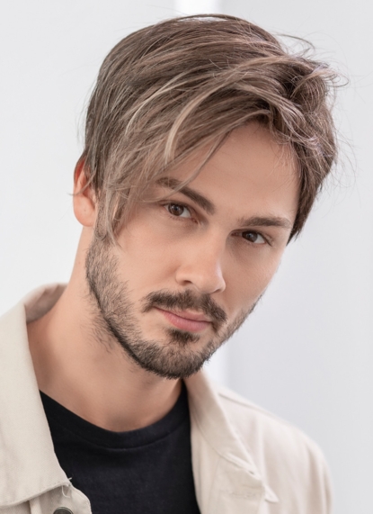 Die Ellen-Wille-Perücke Dave bietet Ihnen eine top moderne Herrenfrisur in verschiedenen, modischen Haarfarben mit einem top Tragekomfort und sehr authentischem Look. Am Hinterkopf und an den Seiten sind die kräftigen Kunsthaare etwas kürzer gehalten, während sich am Oberkopf längere, durchgestufte Haare befinden. Dadurch wirkt die Frisur sehr angesagt und lässt sich flexibel nach Ihren Wünschen stylen - lässig aus dem Gesicht oder als Pony frisiert. Da es sich um robustes, formbares Kunsthaar handelt, können die Haare sogar Hitzeeinwirkung problemlos vertragen. Diese Herrenperücke aus der Hairformance Collection erhalten Sie bei uns in der Standardgröße für Männer für einen Kopfumfang von 58-60 cm.