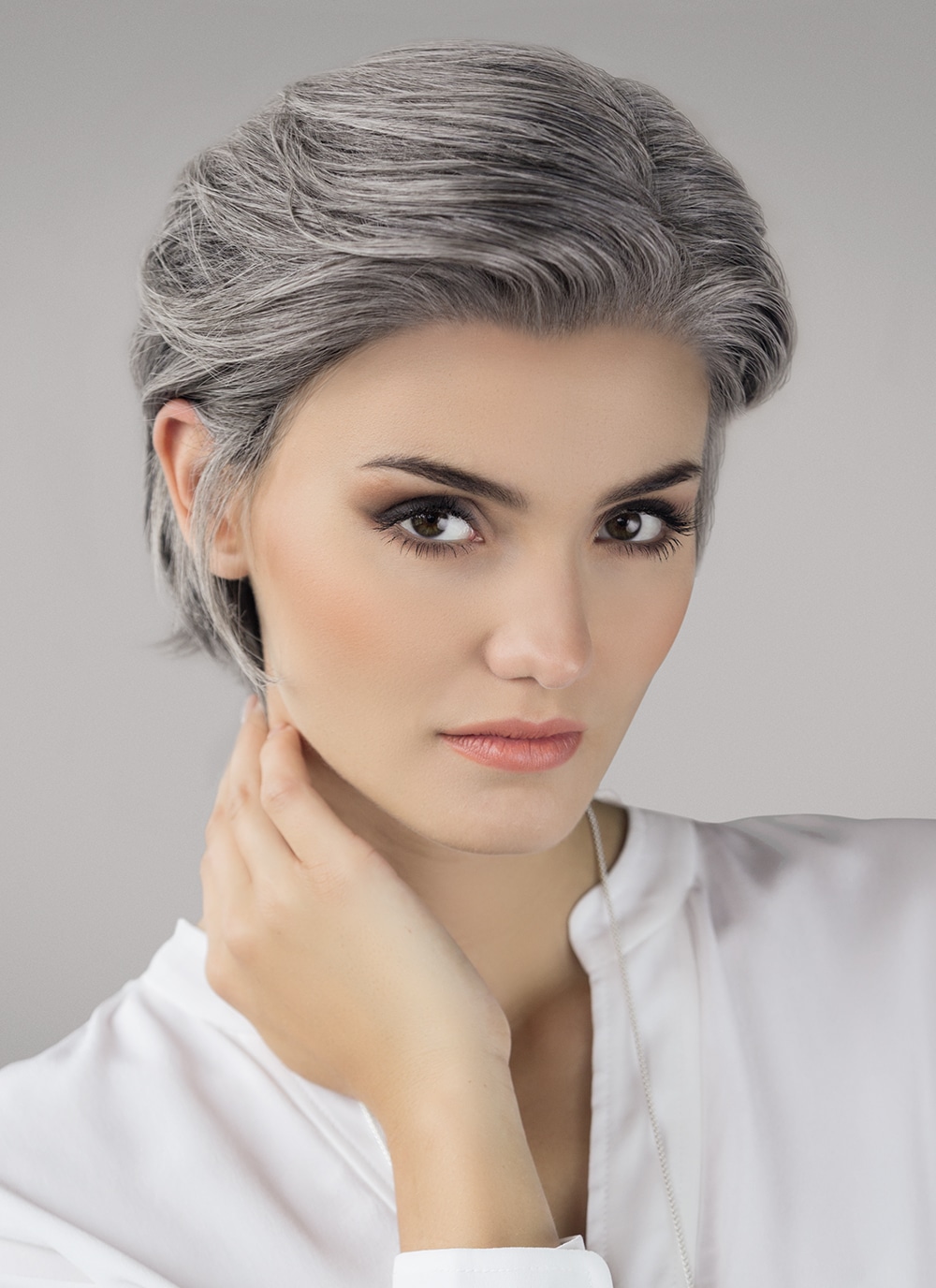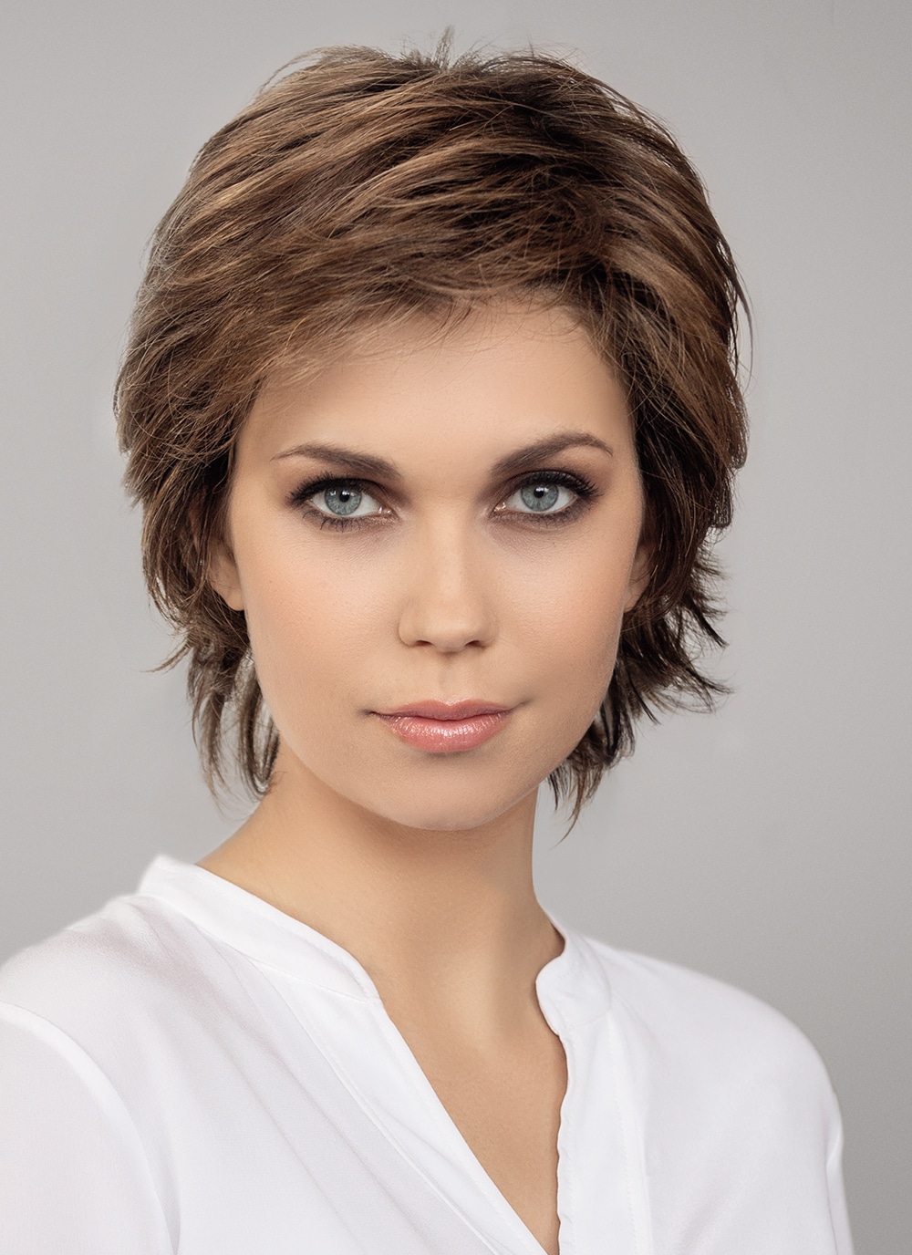 Feminin, elegant, stilsicher – das ist die Kurzhaarperücke Rush aus der Prime Power Kollektion von Ellen Wille. Dieses hochwertige Modell aus einem Echthaar-Synthetik-Mix überzeugt auf ganzer Linie. Es ist in der Standardgröße (54-56cm) verfügbar und lässt sich dank der eingenähten elastischen Bändern perfekt an Ihren individuellen Kopfumfang anpassen. Dieser kurze, fransige Haarschnitt, der leicht asymmetrisch wirkt und im Nacken dezent aufspringt macht Ihren Look perfekt. Lassen Sie sich von dem Mix aus hochwertigem Echthaar und Kunsthaar begeistern, denn hier werden die besten Eigenschaften in einer einzigen Perücke vereint. Stylen Sie die Perücke Rush, wie es Ihnen gefällt – Sie dürfen sie mit bis zu 160°C ganz nach Ihren Wünschen umformen. Auch den Pony können Sie sorgenlos nach hinten frisieren, denn dank des verarbeiteten Filmansatzes wirkt der Haaransatz an der Stirn unglaublich authentisch! Hier, wie auch auf dem feinen Monofilament, welches sich über den Oberkopf erstreckt, ist das Haar einzeln per Hand geknüpft. Dadurch fällt es bei jeder Bewegung leicht und natürlich. Im übrigen Bereich besteht die Montur der Damenperücke Rush aus Tressen, atmungsaktiven Baumwollbändern, die sich zudem dank eines Stretchanteils auch noch perfekt an Ihre Kopfform anschmiegen. Höchster Tragekomfort ist bei diesem Modell garantiert. Wählen Sie Ihre persönliche Lieblingshaarfarbe und seien Sie der Hingucker auf jedem Event. Mit den richtigen Pflege- und Stylingprodukten des Herstellers Ellen Wille können Sie über viele Monate von dieser attraktiven, zeitlosen Damenperücke profitieren.