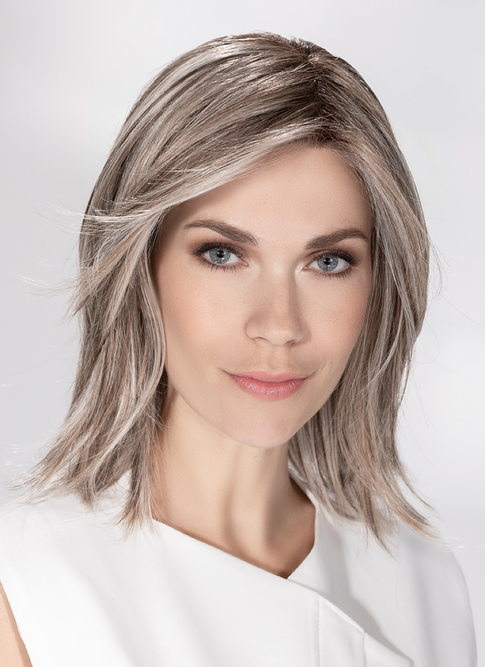 Die Kunsthaarperücke Whisper Comfort aus der Hair Society Kollektion von Ellen Wille steht für sanfte Natürlichkeit und unaufdringliche Eleganz. Die mittellange Frisur zeigt dezente Stufen, die dem Haar Bewegung verleihen, und einen feinen, leicht seitlichen Pony, der das Gesicht weich einrahmt. Durch den geschmeidigen Fall entsteht ein harmonischer, femininer Look mit dezentem Volumen. Dieses Modell ist aus hitzebeständiger Premiumfaser gefertigt, die bis 130 °C formbar ist – ideal für individuelle Styling-Varianten.Die Comfort-Verarbeitung kombiniert handgeknüpfte Partien mit Tressen auf feinem Tüll, wodurch die Perücke besonders atmungsaktiv und stabil ist. Der Filmansatz / Lace Front sorgt für eine natürlich wirkende Stirnlinie und macht das Styling aus dem Gesicht möglich. Die Damenperücke Whisper Comfort ist eine stilvolle, komfortable Kunsthaarperücke für Frauen, die Natürlichkeit, Leichtigkeit und Eleganz schätzen. Sie wirkt gepflegt, hochwertig und bleibt auch bei längerem Tragen angenehm luftig. Erhältlich in vielen natürlichen Farbtönen der Ellen Wille Kollektion.