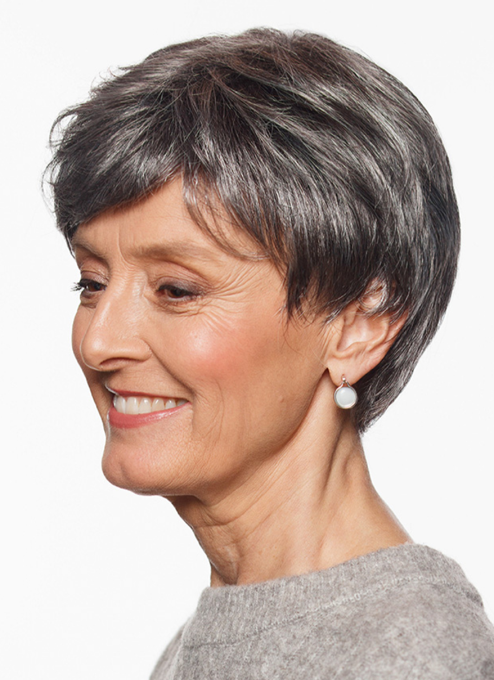 Klassische und ausgesprochen natürlich wirkende Kurzhaarfrisur für die moderne Frau von heute – überzeugen Sie sich selbst von den attraktiven Haarfarben, dem tollen Volumen und der angenehmen Passform der Kunsthaarperücke Ebonny! Sie erhalten diese elegante Damenperücke aus der Sentoo-Collection von Fancy Hair bei uns in der Standardgröße (54-56 cm) und einer großen Auswahl an strahlend schönen Farbtönen. Die lässige, leicht fransig geschnittene Ponypartie fällt so gekonnt in die Stirn, dass an dieser Stelle der Perückenrand nicht zu sehen. Die Frisur besitzt ein kraftvolles Volumen am Oberkopf, wodurch Ihr Zweithaar besonders natürlich aussieht! Die gesamte Montur dieses Modells wurde aus flexiblen und atmungsaktiven Baumwolltressen zu einem lockeren und gleichzeitig anpassungsfähigen Gewebe vernäht. Dieses schmiegt sich sanft an Ihren Kopf an und besitzt dabei gleichzeitig einen zuverlässigen und sicheren Halt!
