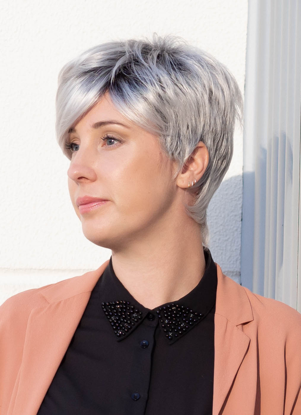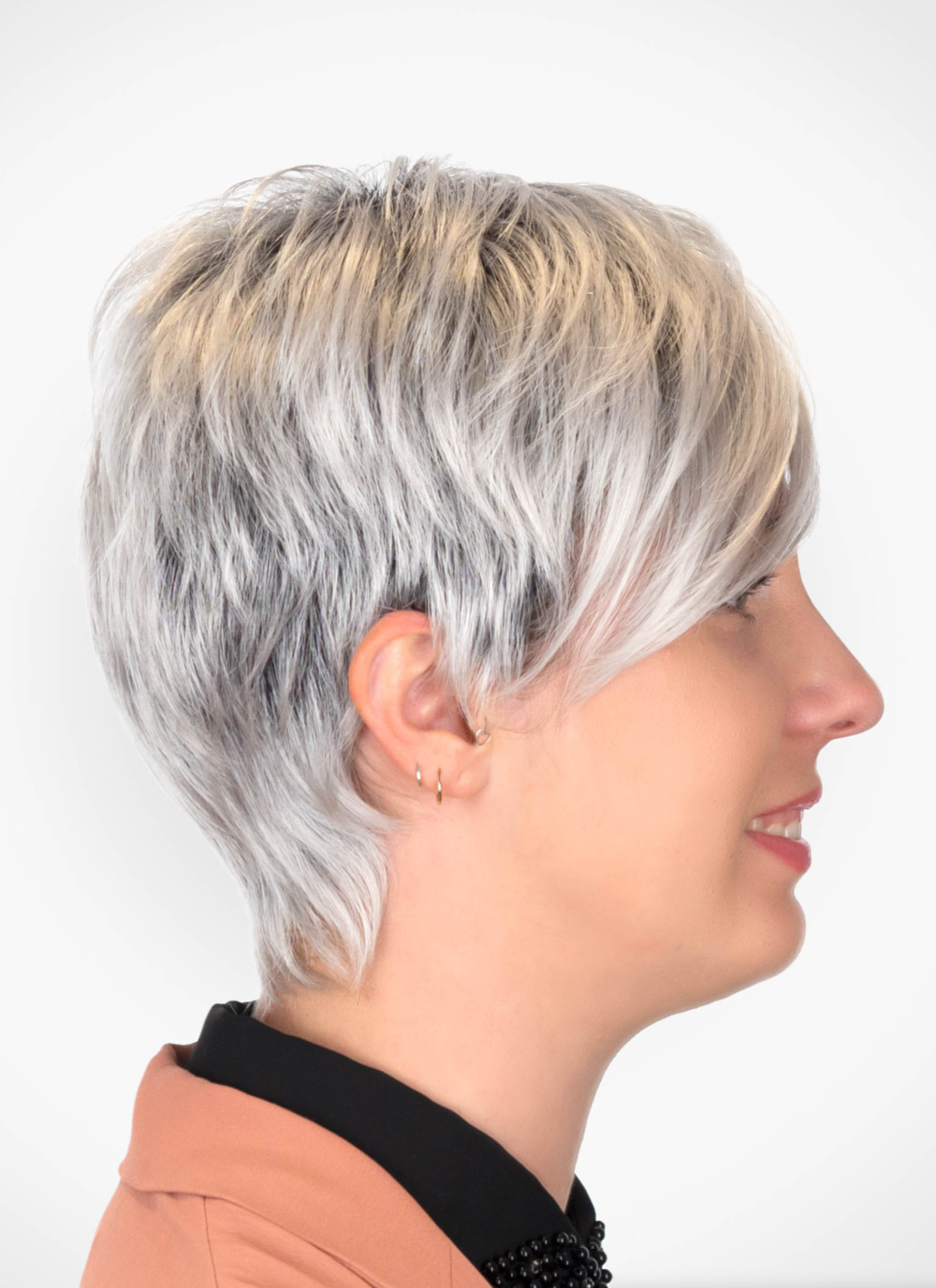 Die Kunsthaarperücke Heather präsentiert sich als femininer Kurzhaarschnitt mit feiner Struktur und fransiger Leichtigkeit. Ihr moderner Pixie-Look wirkt elegant, modisch und unkompliziert zugleich. Der längere Pony kann seitlich oder locker in die Stirn gestylt werden und verleiht dem Gesicht Ausdruck und Weichheit. Dieses Modell aus der Rene of Paris Kollektion von Fancy Hair überzeugt mit ihrer pflegeleichten Kunstfaser, die sich durch natürliche Farbbrillanz und dauerhafte Formtreue auszeichnet. Ideal für Frauen, die sich ein unkompliziertes Styling wünschen, ohne auf Natürlichkeit zu verzichten.Die Montur besteht aus einer Tresse mit Filmansatz, soft unterlegt und unterknüpft. Diese Bauweise bietet angenehmen Komfort, sicheren Halt und eine natürliche Optik. Der Filmansatz sorgt dafür, dass der Haaransatz kaum von echtem Haar zu unterscheiden ist. Die Damenperücke Heather ist in vielen modernen Farbvarianten erhältlich – von eleganten Grautönen bis zu warmen Blonds. Sie ist die perfekte Wahl für Frauen, die eine feminine Kurzhaarperücke mit Stil, Qualität und Leichtigkeit suchen.