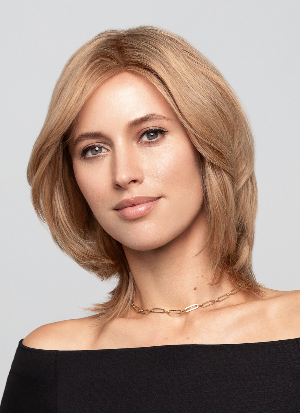 Die Echthaarperücke Euro Mix Pearl aus der Gisela Mayer Human Hair Collection überzeugt mit einer eleganten, natürlich wirkenden Silhouette, die durch ihre sorgfältige Stufung und den harmonischen Fall des Euro-Haares besonders authentisch wirkt. Die frisierte Länge bewegt sich leicht und fließend, während die sanften Übergänge das Gesicht weich einrahmen und einen modernen, femininen Ausdruck schaffen. Das Modell eignet sich hervorragend für Frauen, die eine hochwertige Echthaarperücke suchen, die nicht nur natürlich aussieht, sondern sich auch so anfühlt und auf vielfältige Weise tragen lässt. Die Euro-Haarqualität zeichnet sich durch eine besonders feine, weiche Struktur aus, die sich geschmeidig anfühlt und ein sehr natürliches Oberflächenbild erzeugt. Das mittellange Haar zeigt eine elegante Farbtiefe mit feinen Schattierungen, die selbst bei ruhigerem Styling eine lebendige, dreidimensionale Wirkung erzielen. Die Euro Mix Pearl lässt sich mühelos mit Hitze frisieren und kann sowohl glatt als auch leicht gewellt getragen werden, ohne ihre natürliche Ausstrahlung zu verlieren.Die Montur mit Lace Front ermöglicht einen realistischen, nahezu unsichtbaren Haaransatz, der offene Stirnfrisuren erlaubt und die Natürlichkeit des Euro-Haares zusätzlich betont. Das Innenleben der Perücke ist angenehm leicht und atmungsaktiv und wurde so verarbeitet, dass die Perücke auch über längere Zeiträume hinweg komfortabel sitzt. Das Modell schmiegt sich sanft an den Kopf an, ohne zu beschweren. Die Farbnuancen der Euro Mix Pearl zeichnen sich durch zarte, harmonische Abstufungen aus, die den eleganten Charakter dieses Modells hervorheben. Die Mischung aus natürlichen Grundtönen und sanften Highlights verleiht der Frisur Tiefe und eine edle, moderne Gesamtwirkung. Die Damenperücke Euro Mix Pearl ist damit eine Echthaarperücke für Frauen, die authentische Bewegung, hochwertige Euro-Haarstruktur und eine elegante, zeitlos feminine Form suchen – ein Modell, das Natürlichkeit und Qualität sichtbar macht.