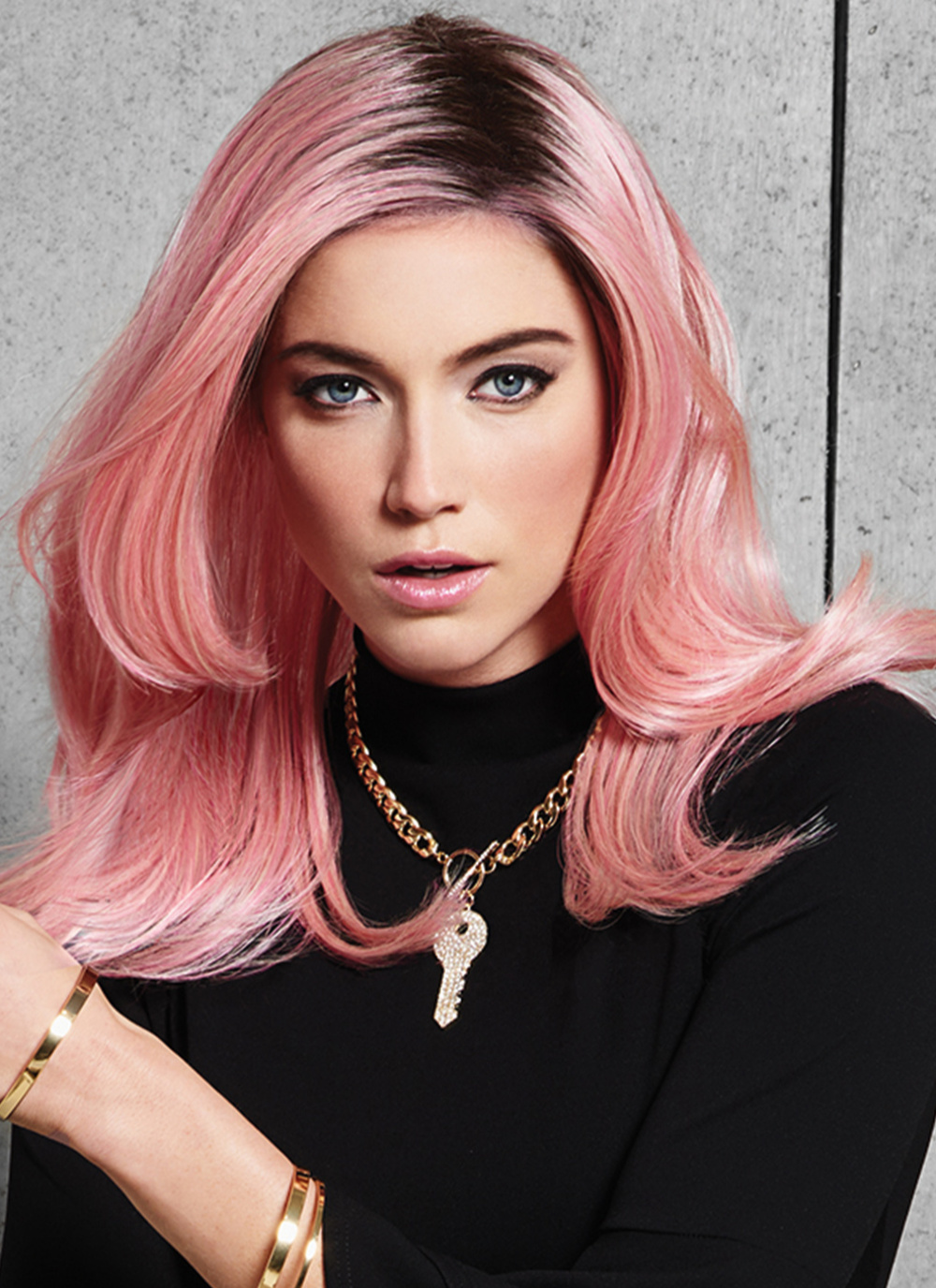 Die Kunsthaarperücke Pinky Promise aus der Hair To Go Kollektion von Gisela Mayer bringt Frische und Leichtigkeit ins Haarbild. Der moderne Rosaton wirkt lebendig, weich und dennoch präsent. Je nach Lichteinfall zeigt die Farbe feine Nuancen zwischen Pastellrosa und kräftigerem Pink – verspielt, aber stilvoll. Die Frisur ist mittellang bis lang mit sanfter Stufung. Die Längen fallen locker über die Schultern und zeigen eine natürliche Bewegung. Der Schnitt sorgt für eine harmonische Balance zwischen Volumen und Leichtigkeit. Besonders im Frontbereich wirkt das Haar weich und schmeichelnd.Das Kunsthaar speichert sowohl Farbintensität als auch Form dauerhaft. Die Fasern wirken geschmeidig und behalten ihre Struktur auch nach dem Waschen. Die Tressenmontur bietet angenehmen Komfort durch elastische Verarbeitung und gute Belüftung und ist passend für einen Kopfumfang von 54–56 cm mit verstellbarer Weitenregulierung. Die Damenperücke Pinky Promise ist ideal für Kundinnen, die einen modischen, femininen Farbakzent setzen möchten – selbstbewusst und modern.
