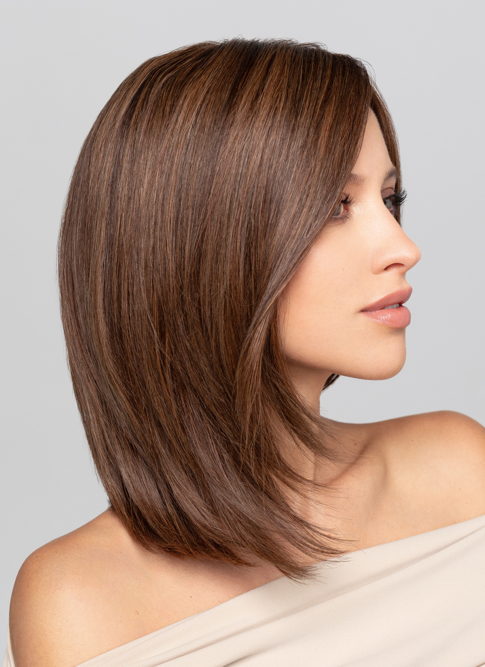 Die Echthaarperücke Prime Age Lace aus der Gisela Mayer Human Hair Collection verbindet einen modernen, natürlich fallenden Schnitt mit hochwertigem Remy-Echthaar. Die weichen Längen und der sanft gestufte Aufbau verleihen dem Modell eine lebendige, harmonische Optik, die weder überladen noch streng wirkt. Diese Frisur eignet sich für Frauen, die eine mittlere Länge bevorzugen und Wert auf eine natürliche Silhouette legen, die flexibel zu verschiedenen Looks passt. Das Remy-Echthaar sorgt für eine besonders geschmeidige Struktur und einen natürlichen Glanz, der die Hochwertigkeit sofort sichtbar macht. Durch die Verarbeitung in gleicher Wuchsrichtung bleibt das Haar weich, gut kämmbar und langlebig. Die Perücke lässt sich problemlos mit Hitze stylen, wodurch unterschiedliche Looks möglich werden – von glatt bis sanft gewellt.Die Montur bietet eine realistische Lace-Front, die für einen unauffälligen Haaransatz sorgt und dem Modell eine hohe Natürlichkeit verleiht. Die atmungsaktive Innenkonstruktion ist leicht und angenehm und macht die Perücke besonders komfortabel für den täglichen Einsatz. Die Farbwelt umfasst moderne Nuancen, darunter Naturtöne, Rooted-Varianten und Strähneneffekte, die die Bewegung des Haares harmonisch unterstreichen. Diese Natürlichkeit verleiht dem Modell eine dreidimensionale Tiefe, die jeder Frisur einen hochwertigen Look schenkt. Die Damenperücke Prime Age Lace ist damit eine Perücke für Frauen, die eine authentisch wirkende Echthaarlösung suchen, die hochwertig, vielseitig und zugleich außergewöhnlich bequem ist.
