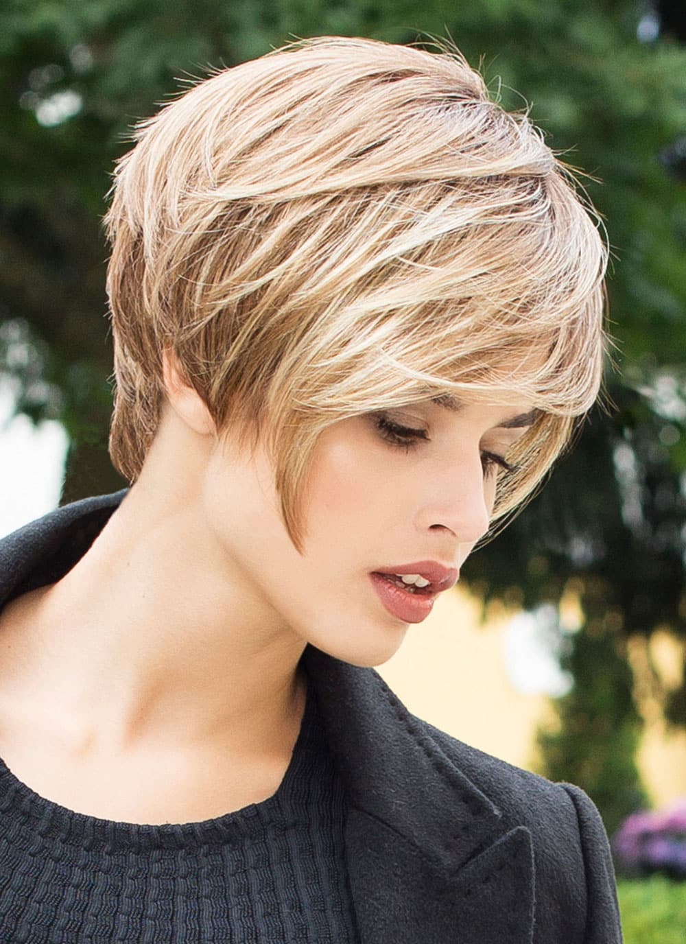 Lässiger Cut mit stylischem, asymmetrischen Pony – diese top moderne Kurzhaarfrisur von Gisela Mayer wird Sie begeistern! Die etwas längeren, lebendigen Stufen verleihen der Kunsthaarperücke Tilda ein herrliches Volumen. Außerdem wirkt die freche Ponypartie nicht nur besonders dynamisch, sie verdeckt zusätzlich den Rand der Damenperücke sehr geschickt! Dieses elegante und zugleich sportliche Modell aus der vielseitigen Modern Hair Collection ist bei uns in der Standardgröße für einen Kopfumfang von 54-56 cm verfügbar. Dabei vereint es die elastische Anpassungsfähigkeit eines weichen Tressen-Gewebes mit dem äußerst authentischen Aussehen eines hochwertigen Monofilaments, welches am Oberkopf eingenäht ist. Dieser transparente und zu 100 % handgeknüpfte Stoff imitiert optisch einen echten Haarwuchs, der direkt aus der Kopfhaut zu kommen scheint! Die anschmiegsamen Baumwolltressen verleihen Ihrem Zweithaar eine sichere Passform und ein frisches Tragegefühl!