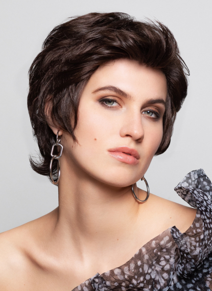 Vornehm, feminin und strahlend - die faszinierende Kunsthaarperücke Visconti Lady Lace von Gisela Mayer überzeugt mit einem äußerst attraktiven Look, seidig schimmernden Haarfarben und einem unkomplizierten Styling. Das besondere Highlight der geschmeidigen Kunsthaare ist ihre Eigenschaft, selbst nach dem Waschen von allein in die ursprüngliche Kurzhaarfrisur zurück zu fallen. So ist Ihr Zweithaar auch nach der Reinigung ohne aufwändiges Styling direkt wieder perfekt frisiert und Sie ready-to-go! Der klassische Schnitt mit leichten Stufen, einer längeren Nackenpartie und dezentem Pony wirkt sehr modern und lässt sich mit den Händen in Form zupfen. Diese Damenperücke aus der Andrea Visconti Collection erhalten Sie bei uns in der Standardgröße. Diese bietet einen zuverlässigen Halt und eine optimale Passform bei einem Kopfumfang von 54-56 cm. Die Montur vereint die natürliche Optik eines Teil-Monofilaments sowie eines Filmansatzes an der Stirn mit dem hohen Tragekomfort elastischer und weicher Baumwolltressen.