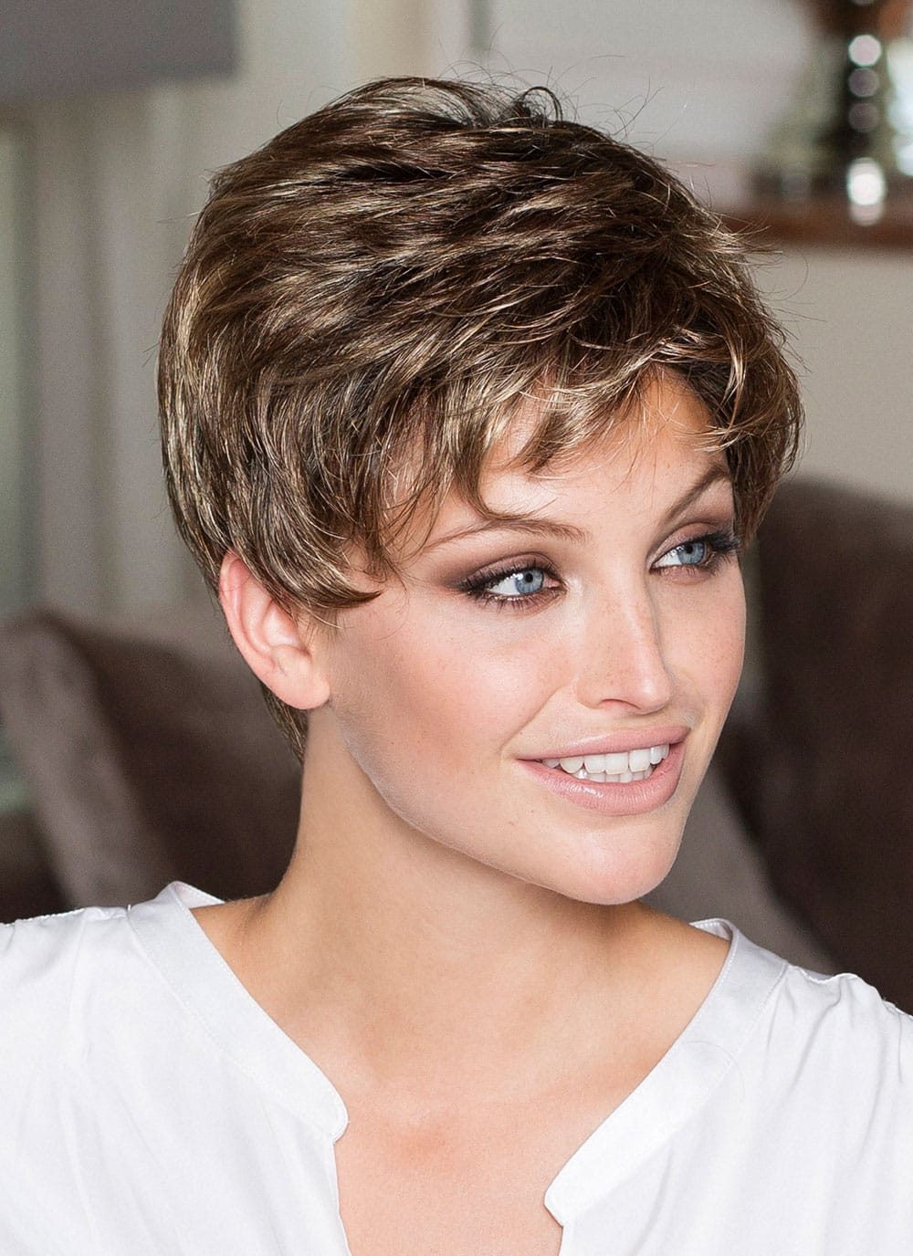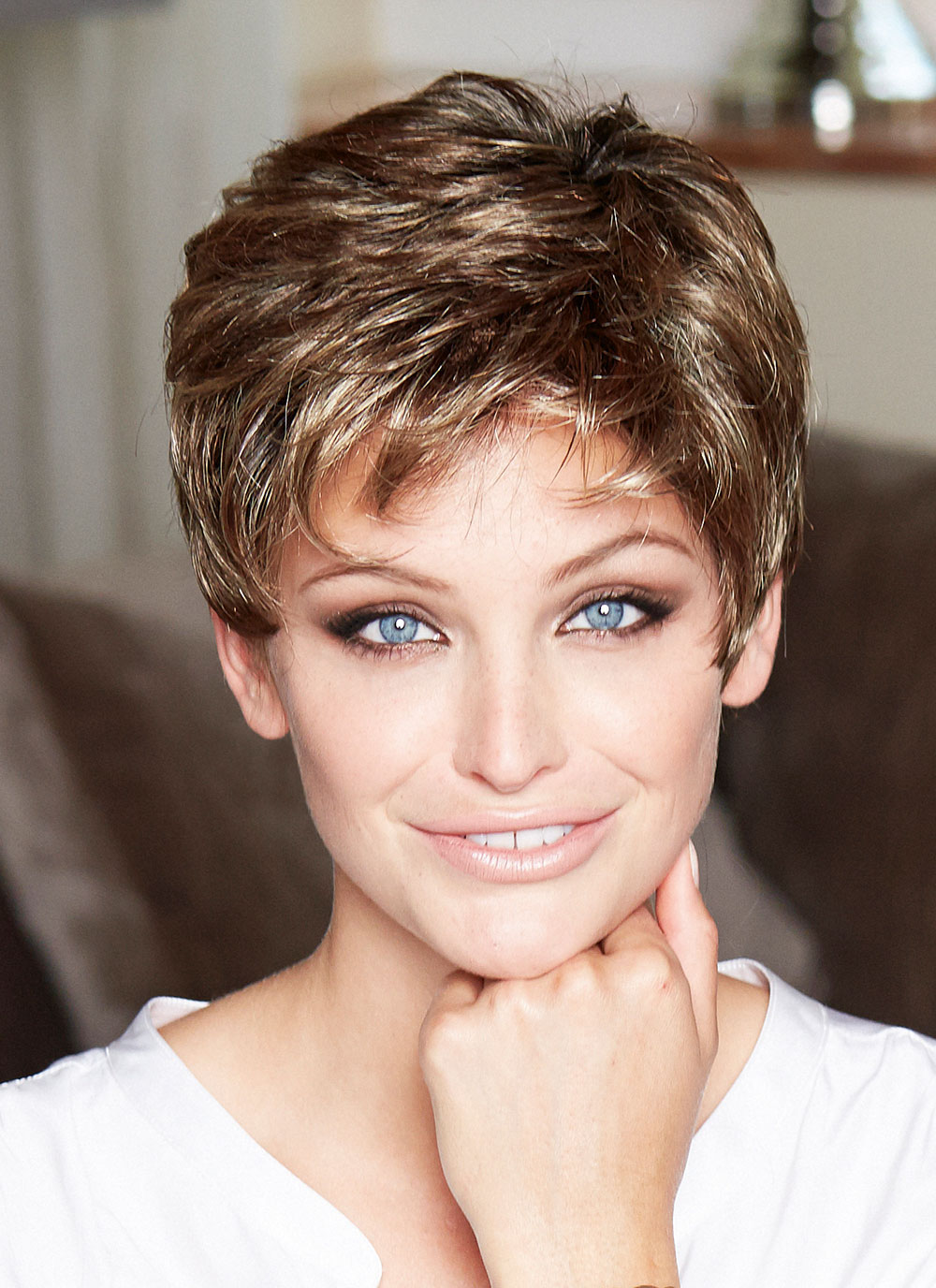 Fröhlich und entspannt können Sie in den Tag starten mit der hochwertigen Kunsthaarperücke Visconti Shorty Mono Lace von Gisela Mayer! Dank der verarbeiteten Kunstfaser ist die Damenperücke aus der Star Hair-Kollektion immer ready-to-wear, denn das Styling ist permanent! Nach dem Waschen fällt die Perücke einfach wieder in ihre ursprüngliche Form zurück – es genügt, sie eventuell etwas aufzuschütteln! Die Tressen der Montur sind grobmaschig vernäht und ermöglichen dadurch eine vorteilhafte Zirkulation der Luft. Auch der ausgesprochen natürliche Look der frischen Kurzhaarperücke beschert Ihnen ein sorgenfreies, sicheres Gefühl, denn aufgrund des Monofilamentgewebes und des Filmansatzes wird niemand Ihre Perücke als solche identifizieren! Entscheiden Sie sich für ein sorgenfreies Leben mit der Visconti Shorty Mono Lace von Gisela Mayer!